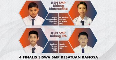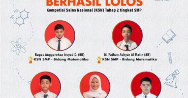 Selamat kepada 4 siswa SMP Kesatuan Bangsa yang lolos ke Kompetisi Sains Nasional (KSN) tingkat nasional. Siswa-siswa tersebut yaitu: Matematika Bagas Anggareksa Irsyad Dhanisywara (9B) M. Fathan Achyar Al
