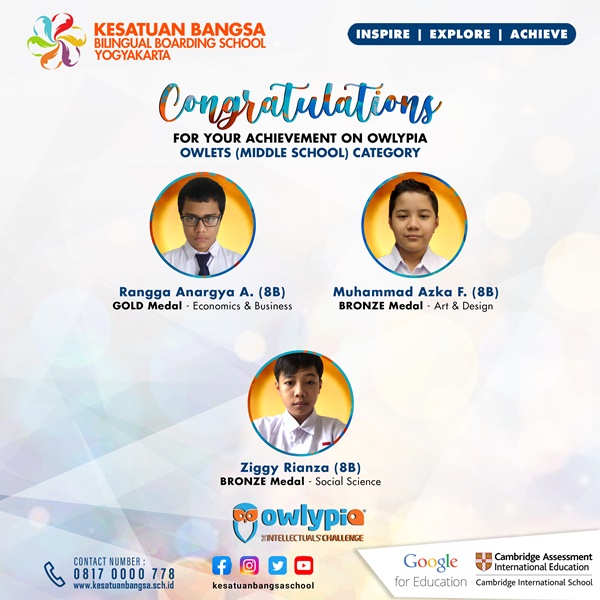 - Rangga Anargya Ananta (kelas 8) – Ekonomi & Bisnis (Owlets) – Medali EMAS