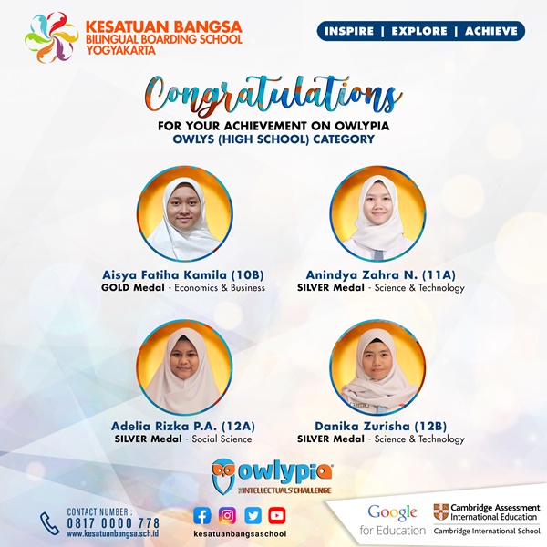 - Aisya Fatiha Kamila (kelas 10) – Ekonomi & Bisnis (Owlys) – medali EMAS