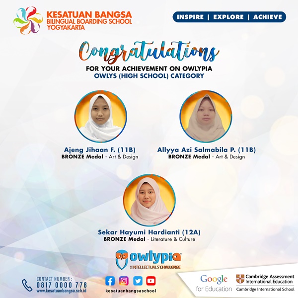 - Anindya Zahra N. (kelas 11) – Sains & Teknologi (Owlys) – medali PERAK